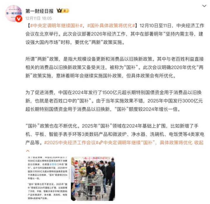 也就是说,可以确定明年还会有国补,且具体国补政策将会有所优化,想要在明年进行各种用品购置的小伙伴可以关注一下相关消息。