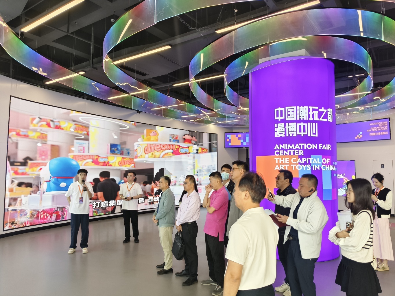 本次活动以“合作共建 互学互鉴 ”为主题,分为实地调研和座谈交流两个环节。调研活动中,参加人员观摩调研了石排镇潮玩产业发展和党员教育融合成果,观看了专题片《党建领航 潮动石排》,对石排镇开展“党建领航潮玩产业发展”专题现场教学进行了深入探讨。